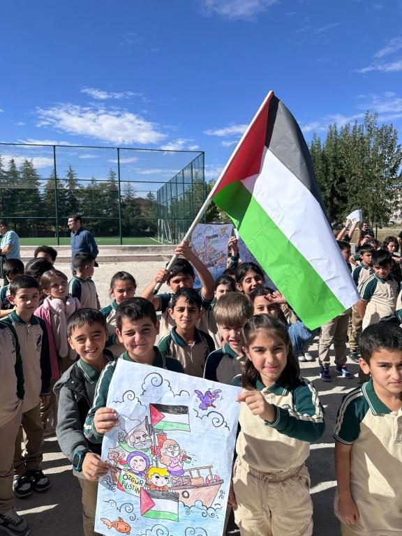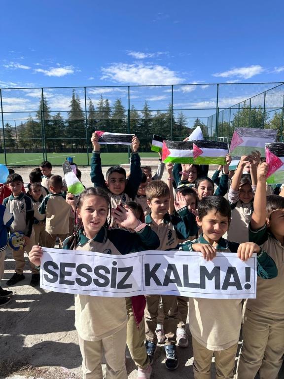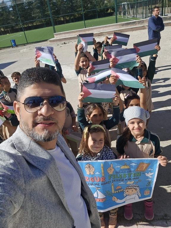 Bakanlığımızın ilgi yazılarında 7 Ekim Salı sabahı ülkemizdeki Tüm okullarda eş zamanlı olarak Türkiye yüzyılı Maarif modeli Erdem değer Eylem yaklaşımı esas alınarak gençlerimize Filistin'de yaşanan insan hakları ihlallerinin sona erdirilmesine yönelik olarak Filistin farkındalık etkinlikleri düzenleneceği bildirilmiştir Biz de Okulumuz Mustafa Kemal İlkokulu olarak Filistin farkındalık etkinlikleri düzenledik öğrencilerimizin ve öğretmenlerimizin tam katılımıyla Zalim İsrail zulmüne dur dedik.